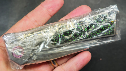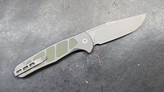 LTK REZULT Button Lock, Titanium Handle Green G10 Inlay 20CV (NEW)