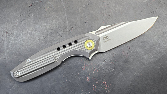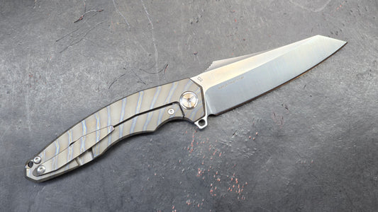 TwoSun Sidewinder Front Flipper Pocket Knife Gray Titanium & CF Handle M390 (NEW)