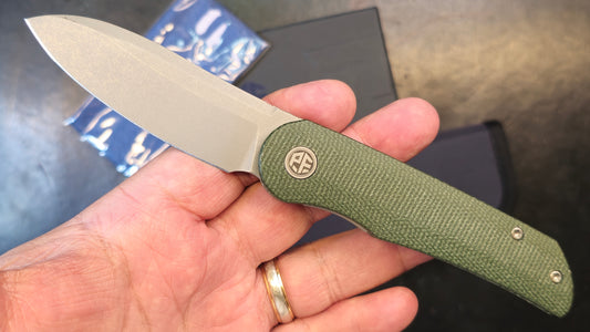 Petrified Fish PFE16 El Camino N690 Steel Blade, (Green Micarta) (OPEN BOX)