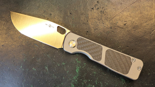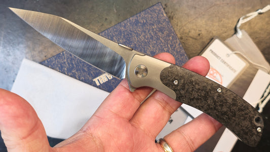 TRIVISA UMa-05 Flipper with Clip, CPM S35VN Wharncliffe Blade, Ti Bolster and Thumb Disk, Carbon Fiber Scales (OPEN BOX)