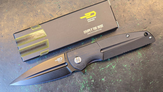 Bestech Fin Folding Knife Black G10 14C28N Plain Edge Black Stonewash (OPEN BOX)