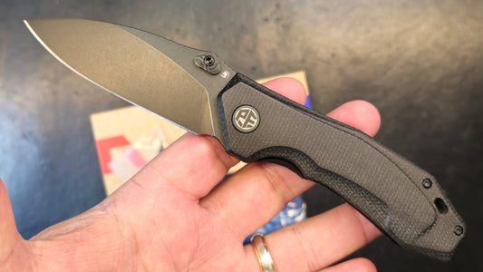 Petrified Fish Havrog Black Micarta Thumb Stud Liner Lock K110 Black/Stonewashed Blade (OPEN BOX)