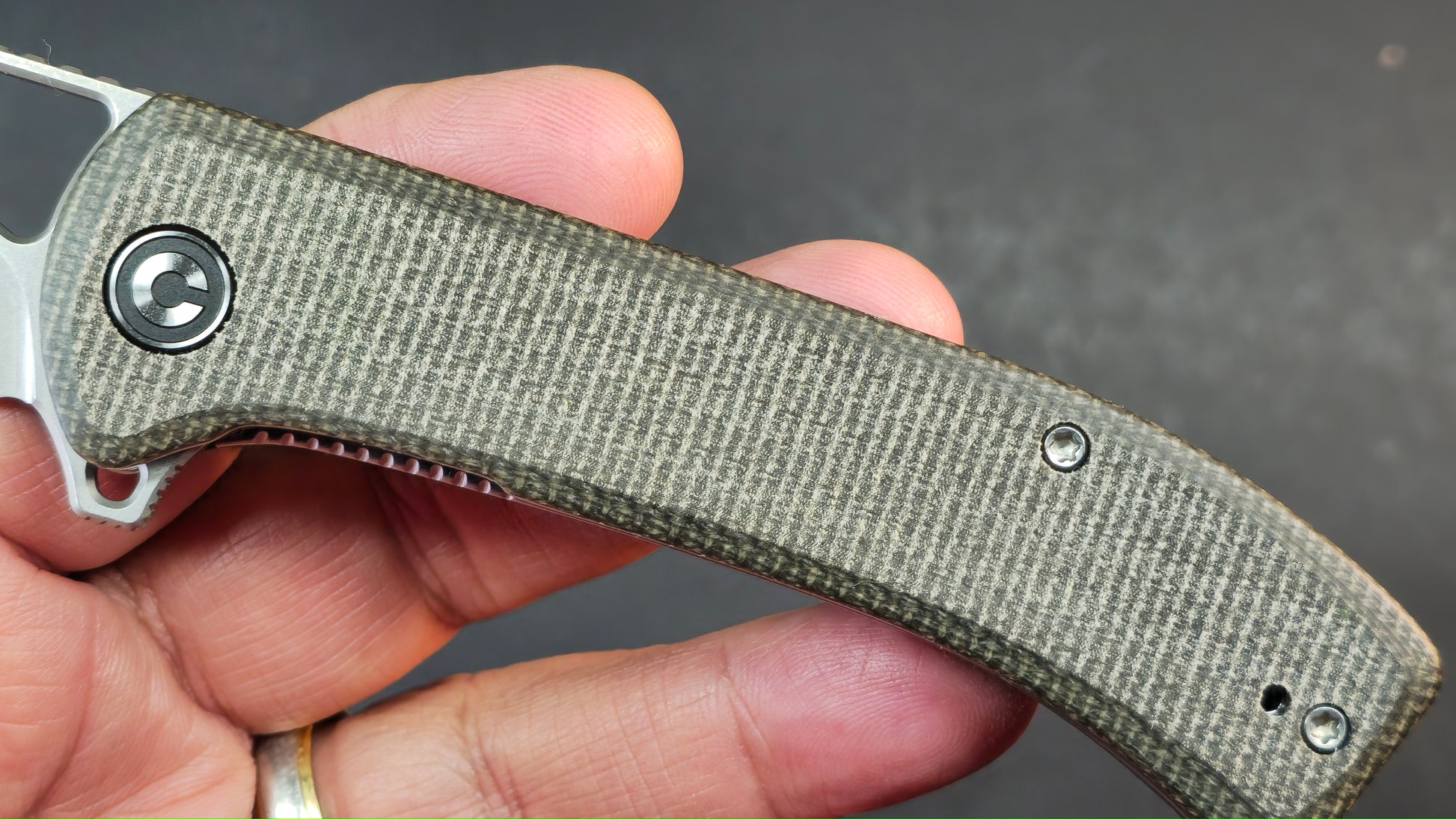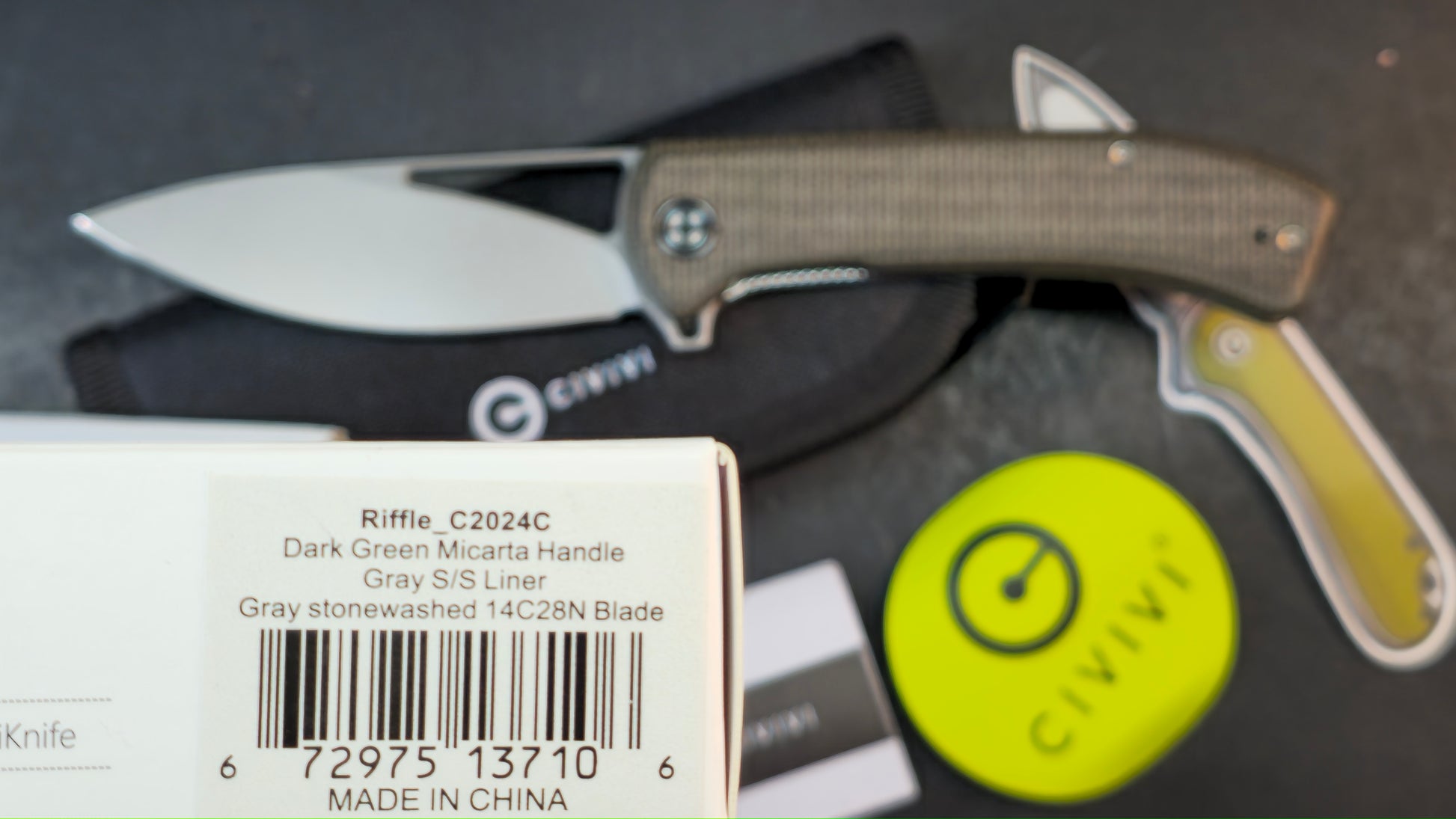 CIVIVI Riffle Flipper & Thumb Hole Micarta Handle 3.46" 14C28N Blade