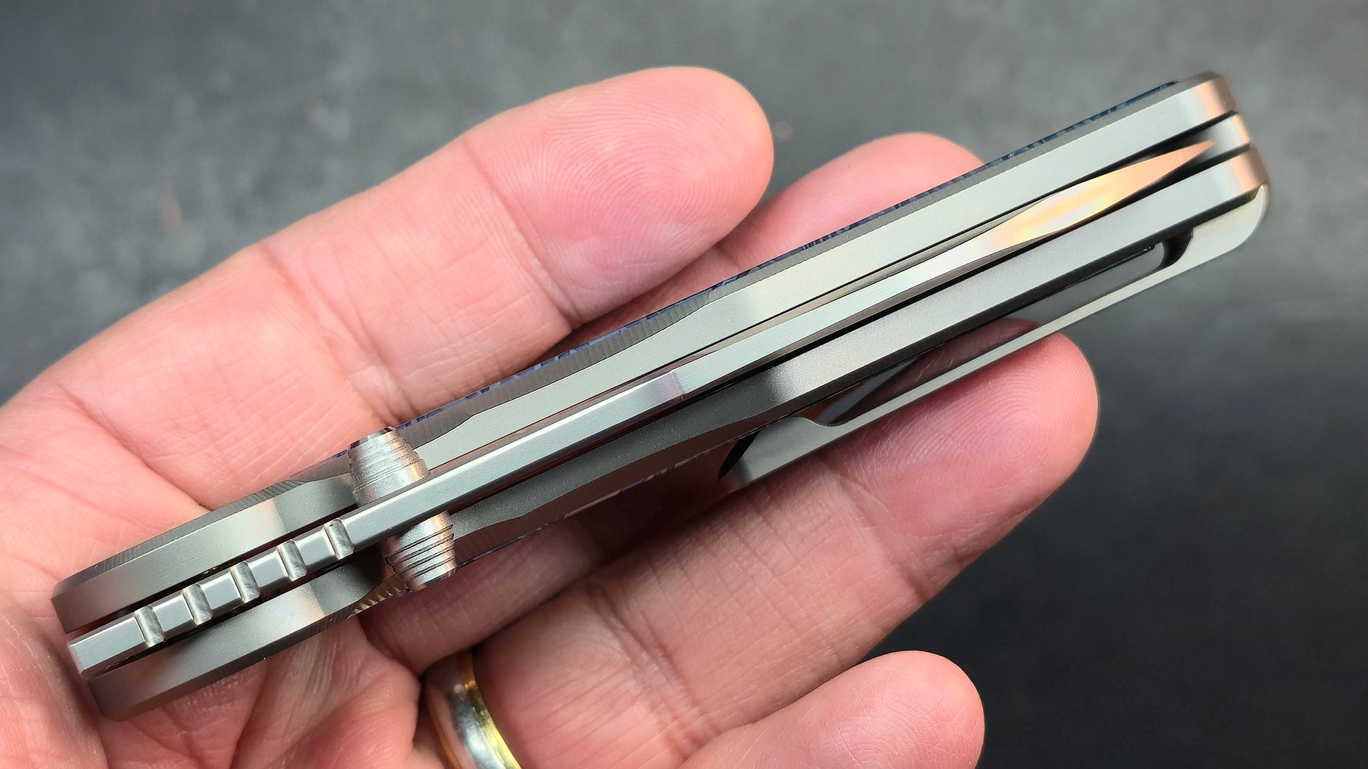 Handle:Titanium alloy+TiDamascus / Blue